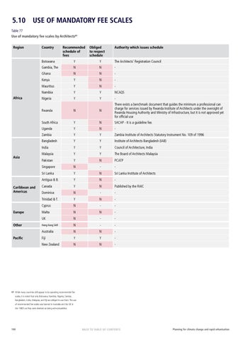 5.10 USE OF MANDATORY FEE SCALES Table 77 Use of mandatory fee scales by Architects69 Region
