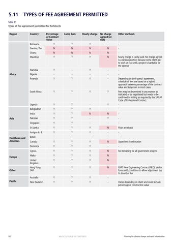 5.11 TYPES OF FEE AGREEMENT PERMITTED Table 81 Types of fee agreement permitted for Architects Region