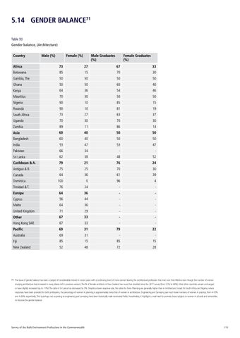 5.14 GENDER BALANCE71 Table 93 Gender balance, (Architecture) Country