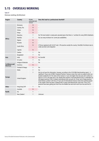 5.15 OVERSEAS WORKING Table 97 Overseas working, (Architecture) Region