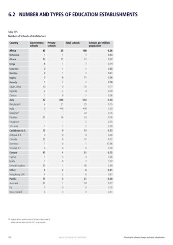 6.2 NUMBER AND TYPES OF EDUCATION ESTABLISHMENTS Table 105 Number of Schools of Architecture Country Africa