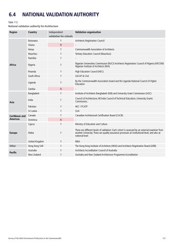 6.4 NATIONAL VALIDATION AUTHORITY Table 113 National validation authority for Architecture Region