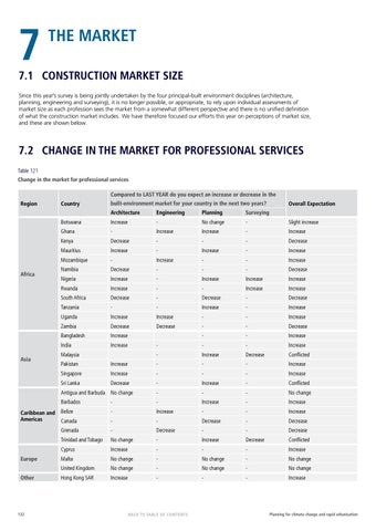 7.2 CHANGE IN THE MARKET FOR PROFESSIONAL SERVICES Table 121 Change in the market for professional services Compared to LAST YEAR do you expect an increase or decrease in the Region