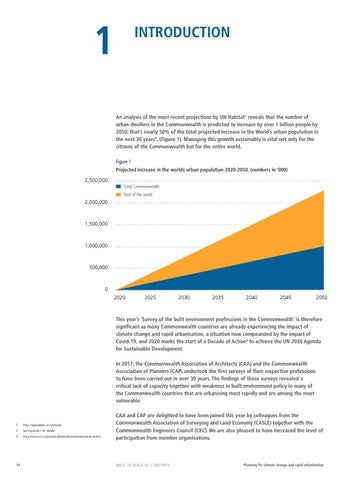 An analysis of the most recent projections by UN Habitat1 reveals that the number of urban dwellers in the Commonwealth is predicted to increase by over 1 billion people by 2050; that’s nearly 50% of the total projected increase in the World’s urban population in the next 30 years2, (Figure 1). Managing this growth sustainably is vital not only for the citizens of the Commonwealth but for the entire world. Figure 1 Projected increase in the worlds urban population 2020-2050, (numbers in ‘000) 2,500,000 Total Commonwealth Rest of the world
