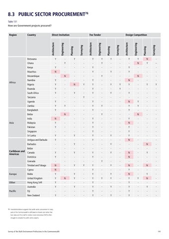 8.3 PUBLIC SECTOR PROCUREMENT76 Table 131 How are Government projects procured?