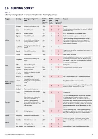 8.6 BUILDING CODES75 Table 137 Is Building Code legislation fit for purpose and implemented effectively? (Architects) Region