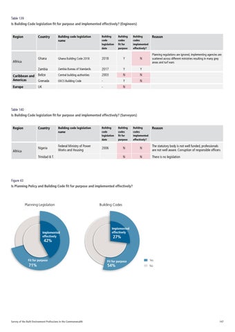 Table 139 Is Building Code legislation fit for purpose and implemented effectively? (Engineers) Region