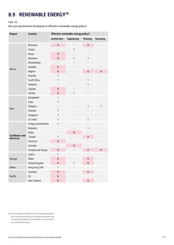 8.9 RENEWABLE ENERGY78 Table 143 Has your government developed an effective renewable energy policy? Region