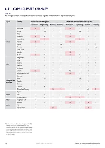 8.11 COP21 CLIMATE CHANGE80 Table 145 Has your government developed climate change targets together with an effective implementation plan? Region