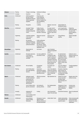 Inadequate support for built environment professionals from the Government to adequately perform their functions.