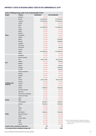 appendix v. STATUS OF BUILDING ENERGY CODES IN THE COMMONWEALTH, 201988 Status of Building Energy Codes in the Commonwealth in 2019 Region Country Residential Botswana