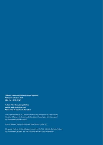 Publisher: Commonwealth Association of Architects Publication date: June 2020 ISBN: 978-1-5272-6714-5 Authors: Peter Oborn, Joseph Walters Website: www.comarchitect.org Please direct all enquiries to the author Survey conducted jointly by the Commonwealth Association of Architects, the Commonwealth Association of Planners, the Commonwealth Association of Surveying and Land Economy and the Commonwealth Engineers Council Design by Allies and Morrison, Architects and Urban Planners, London, UK With grateful thanks for the financial support received from The Prince of Wales’s Charitable Fund and the Commonwealth Secretariat, and to all contributors and participating organisations.
