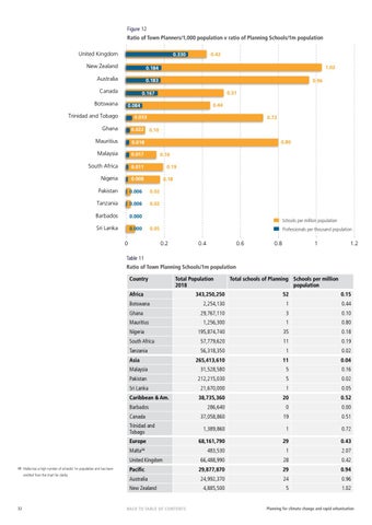 Table 11 Ratio of Town Planning Schools/1m population Country