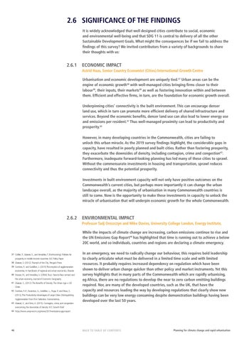 2.6 SIGNIFICANCE OF THE FINDINGS It is widely acknowledged that well designed cities contribute to social, economic and environmental well-being and that SDG 11 is central to delivery of all the other Sustainable Development Goals. What might the consequences be if we fail to address the findings of this survey? We invited contributors from a variety of backgrounds to share their thoughts with us: