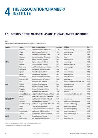4.1 DETAILS OF THE NATIONAL ASSOCIATION/CHAMBER/INSTITUTE Table 15 Details of the National Architectural Association/Chamber/Institute Region