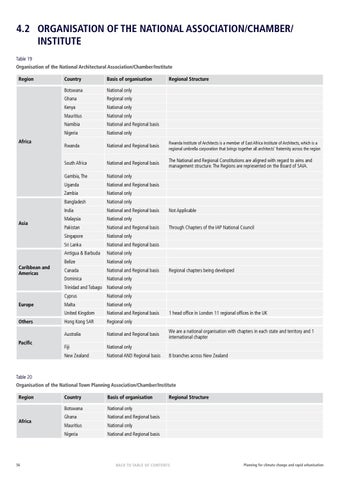 Table 20 Organisation of the National Town Planning Association/Chamber/Institute Region