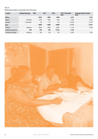 Table 26 Membership numbers and growth rates (Surveyors) Country