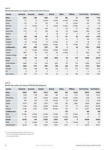 Table 29 Membership numbers by category of Membership (Engineers) Country
