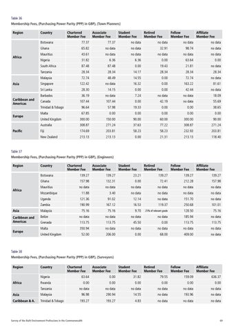 Table 37 Membership Fees, (Purchasing Power Parity (PPP) in GBP), (Engineers) Region