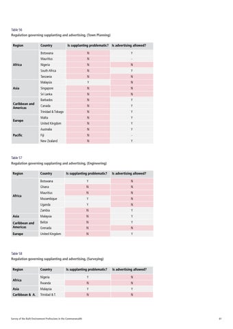 Table 58 Regulation governing supplanting and advertising, (Surveying) Region