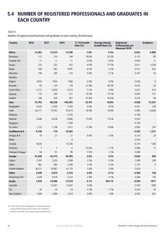 5.4 NUMBER OF REGISTERED PROFESSIONALS AND GRADUATES IN EACH COUNTRY Table 59 Number of registered professionals and graduates in each country, (Architecture) Country