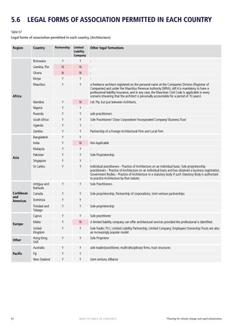 5.6 LEGAL FORMS OF ASSOCIATION PERMITTED IN EACH COUNTRY Table 67 Legal forms of association permitted in each country, (Architecture) Region