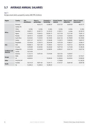 5.7 AVERAGE ANNUAL SALARIES Table 71 Average annual salaries, grouped by country, (GBP, PPP), Architects