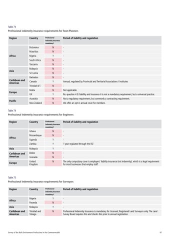 Table 75 Professional indemnity insurance requirements for Surveyors Region