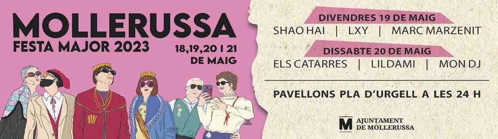 06 TÀRREGA I Porten a votació del Ple el nou Reglament de Participació Ciutadana. 08 MOLLERUSSA I 2a edició del torneig de Warhammer 40.000. 09 PLA D'URGELL I La marxa cicloturística Catigat presenta l’edició més inclusiva. 10 PENELLES I Gargar Festival de Murals i d’Art Rural de Penelles, del 5 al 7 de maig. 16 CERVERA I Celebren els 20 anys dels Premis Jordi Pàmias.