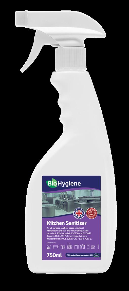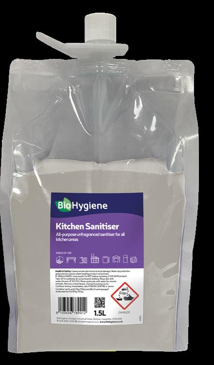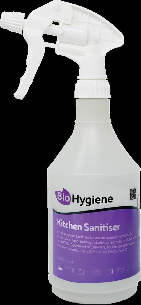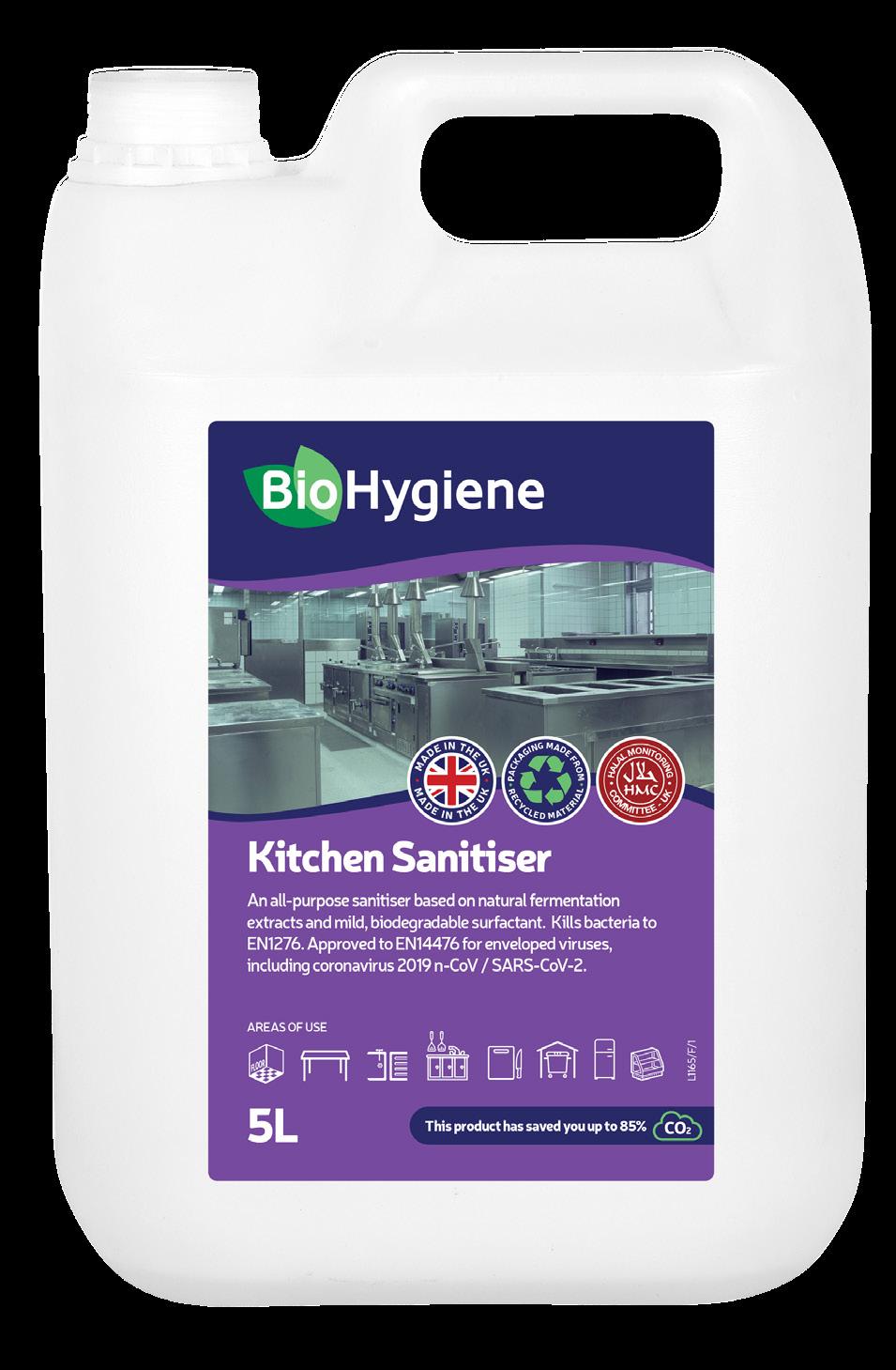 BioHygiene Kitchen Sanitiser is the safe way to prevent the spread of bacteria and viruses, including all types of coronavirus. The quad action formula disinfects, deodorises, de-scales and deep cleans surfaces throughout your kitchen and culinary areas.