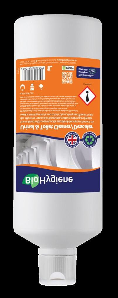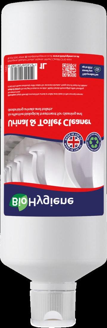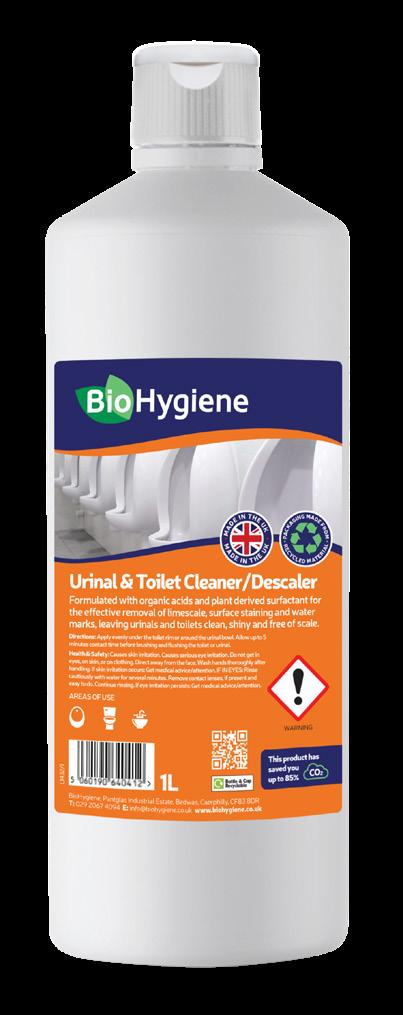 BioHygiene Urinal and Toilet Cleaner/Descaler is the eco-friendly way to keep your urinals and toilets clean and odour free. Made with organic acids and plant derived surfactants, the powerful formula quickly removes scale, stains and soiling for a long-lasting deep clean.
