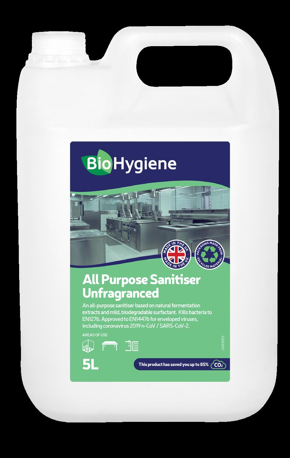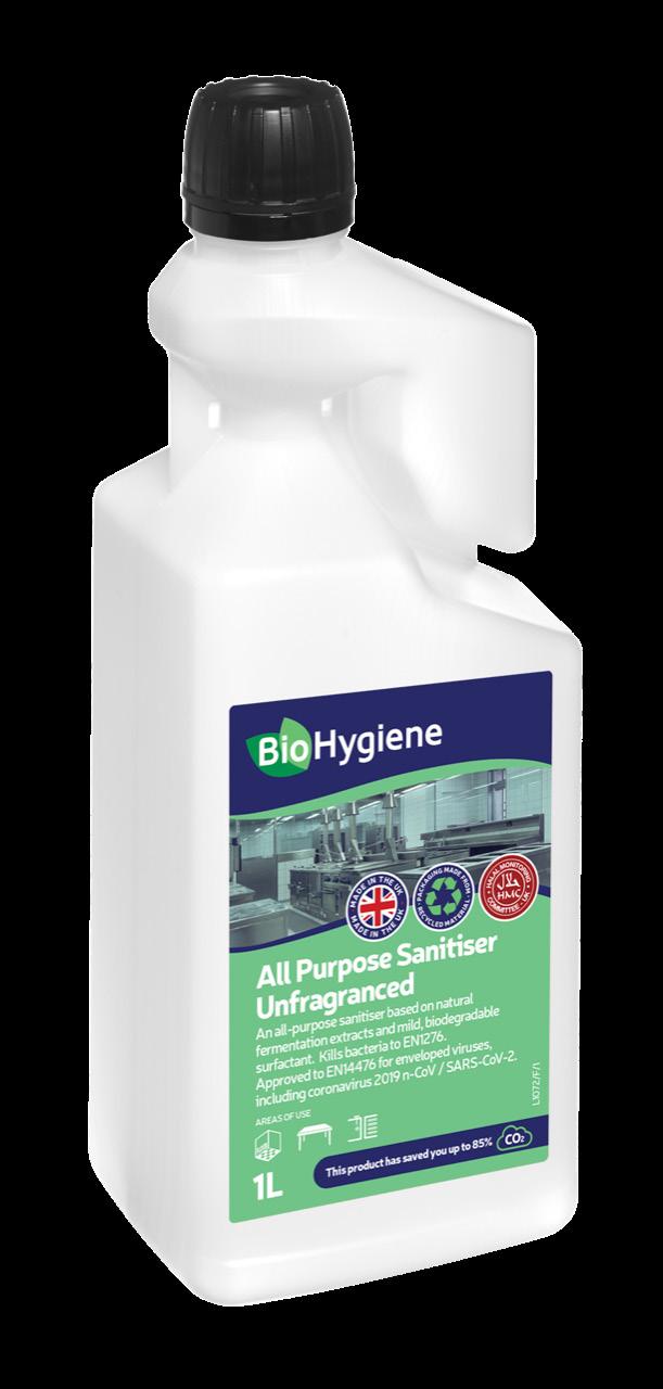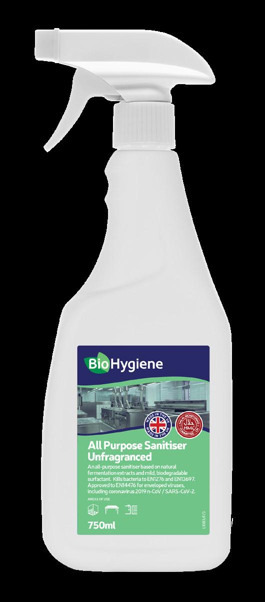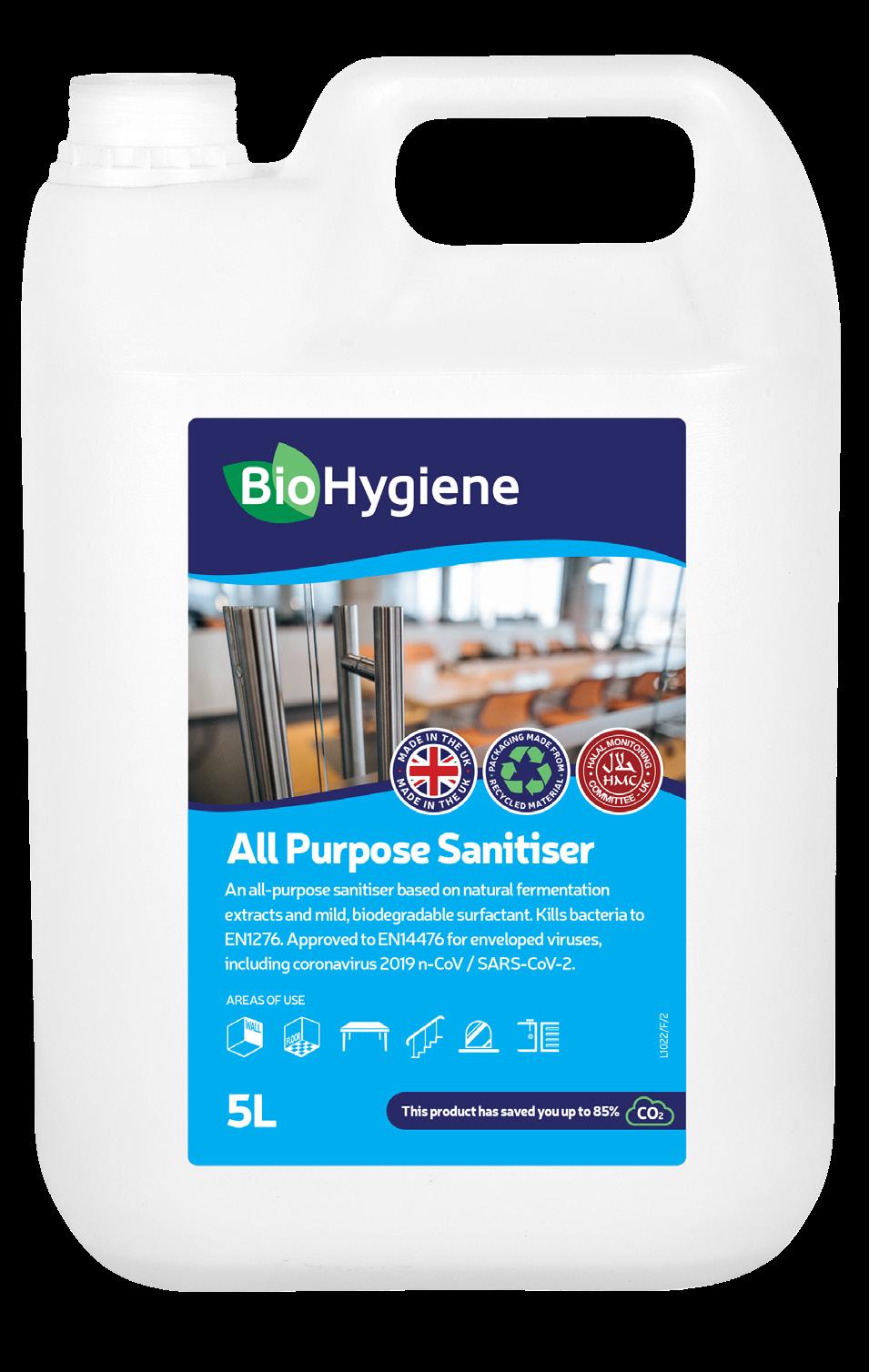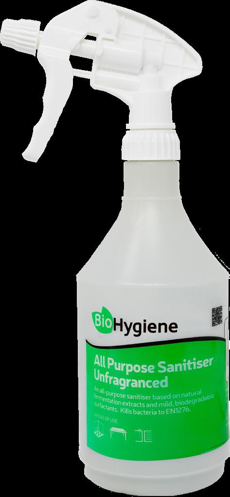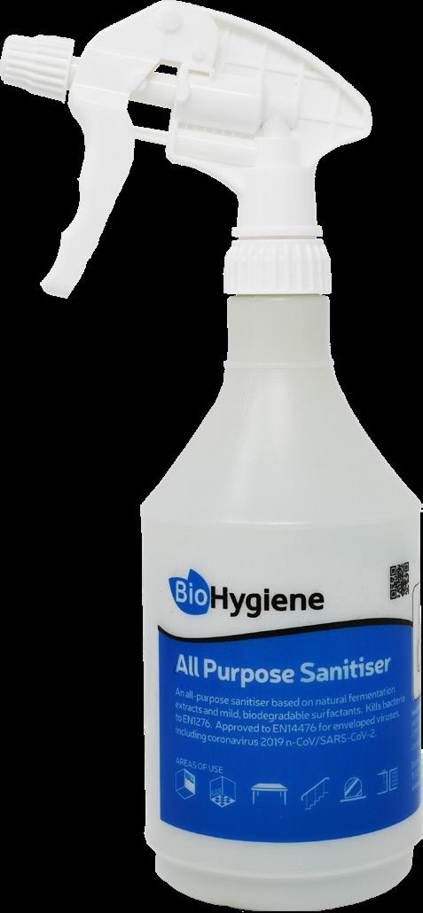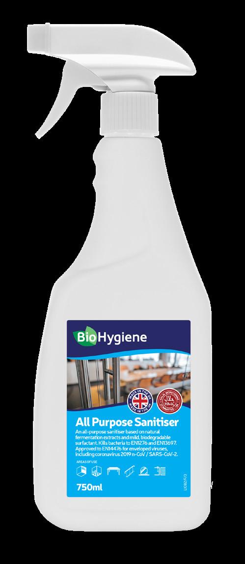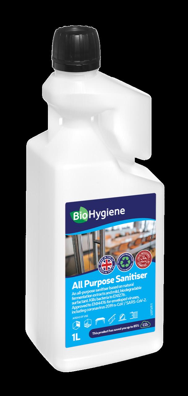 BioHygiene All Purpose Sanitiser is the eco-friendly way to prevent the spread of bacteria and viruses throughout your workplace. Specialist biotechnology provides powerful quad action cleaning to disinfect, deodourise, descale and deep clean.