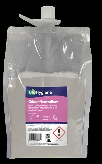 BioHygiene Odour Neutraliser utilises absorbent technology for fast removal of unpleasant odours, effectively refreshing and revitalising stale or foul-smelling surfaces
