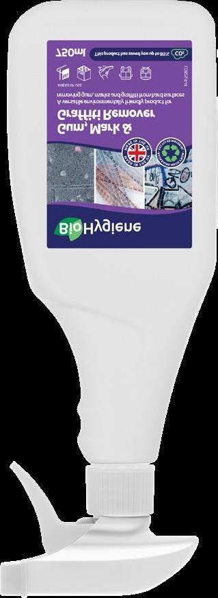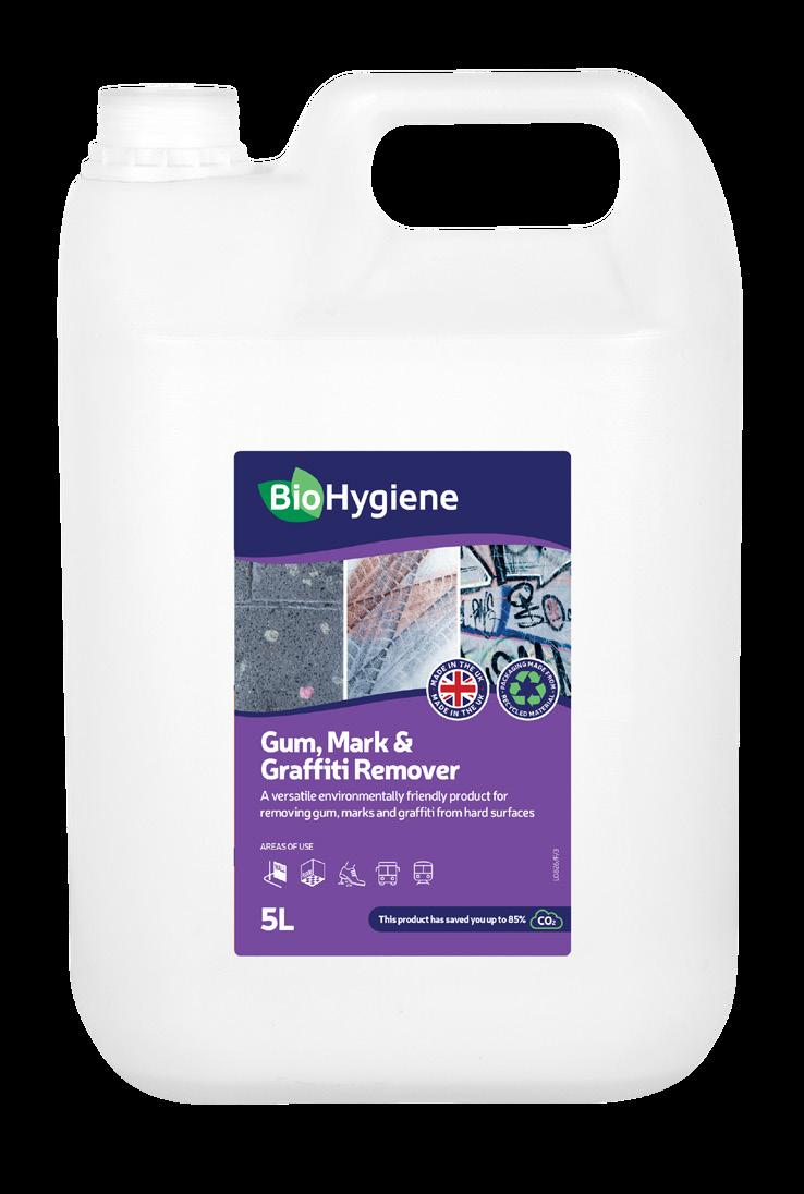 Quickly restore surfaces and remove unsightly marks, scuffs, graffiti and chewing gum with BioHygiene Gum, Mark and Graffiti Remover. The non-hazardous, eco-friendly formula lifts and disperses tough