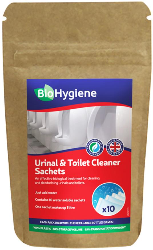 An eco-friendly solution that combines specialist microbes with an acidic cleaning system that softens hard water scale and reduces the build up of organic uric acid scale to help remove odours and ensure pipework is blockage free.