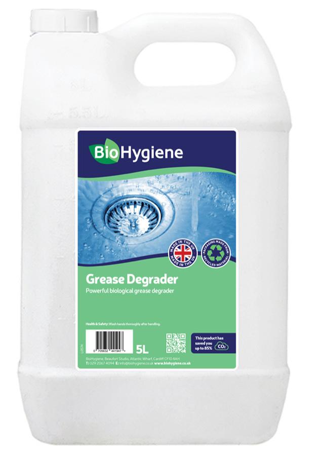 Ensure a clean, odourless, freeflowing system with BioHygiene Grease Degrader. The powerful biotech formula breaks down fats, oils, grease and organic matter for a deep, long-lasting clean and superior odour control.