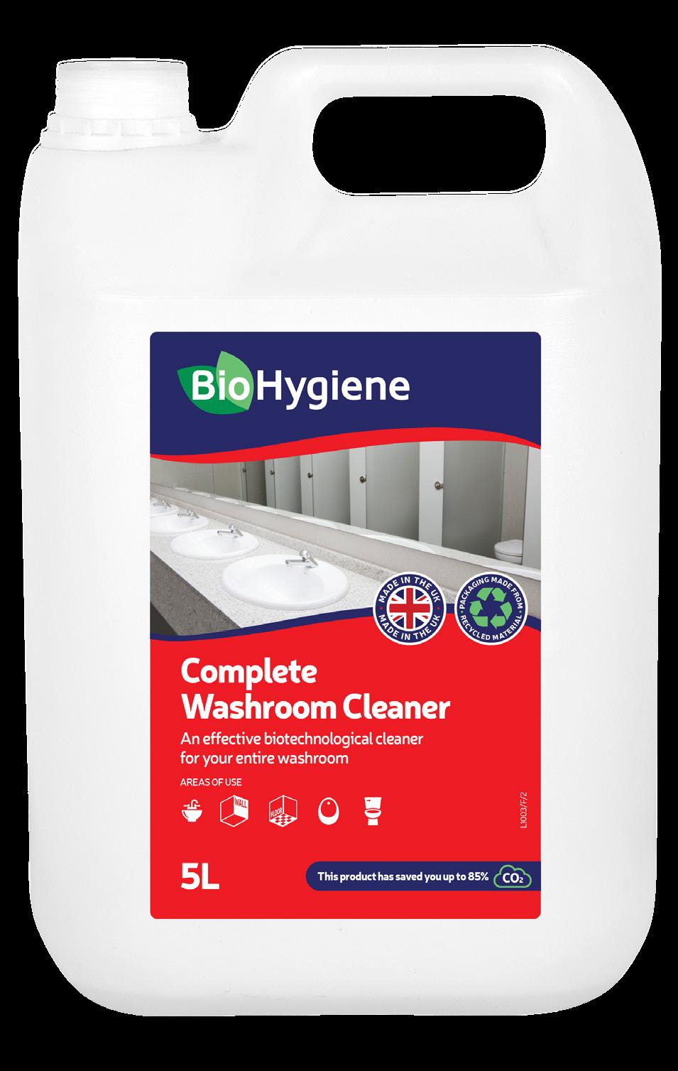 Residual cleaning action from powerful biotechnology reduces CO2e, labour time, storage, and costs.