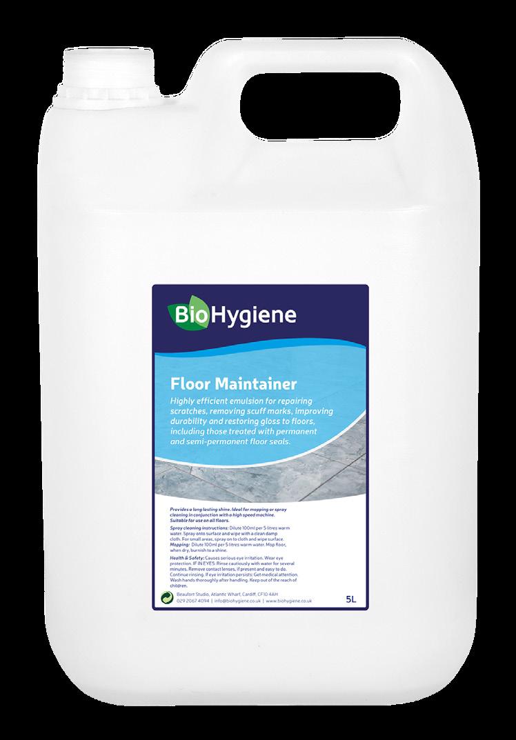 BioHygiene Floor Maintainer utilises powerful natural surfactants and wax emulsions to clean, repair and restore shine to floors. The no-rinse formula is suitable for scrubbing machines, mops or a spray and cloth for easy everyday floor cleaning.