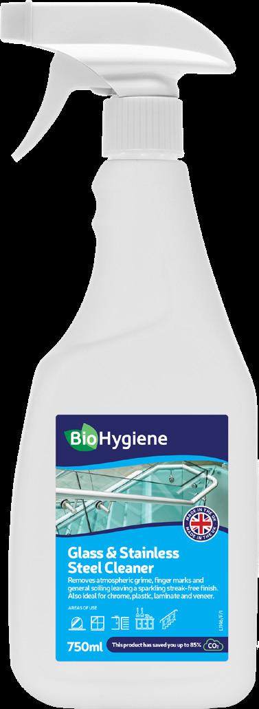 Breathe new life into your glass and steel surfaces with BioHygiene Glass and Stainless Steel Cleaner. The naturally-derived formula quickly cuts through and removes grime, finger marks and general soiling leaving a sparkling streak-free finish.