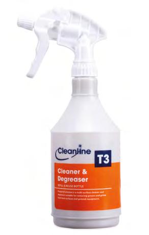 Dual-action cleaner and sanitiser formula cuts through grease and dried on food soiling.