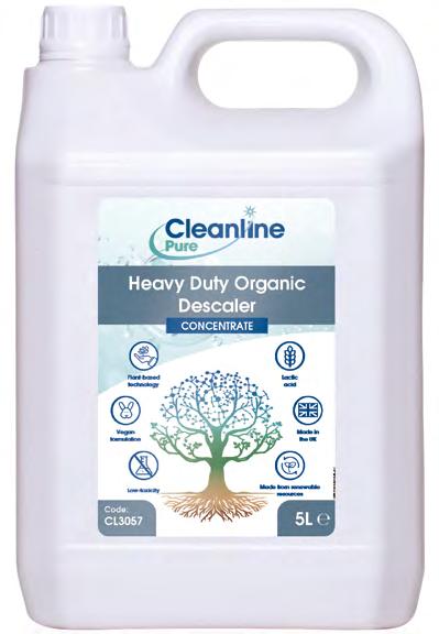 Cleanline Pure Heavy Duty Organic Descaler Concentrate is an organic acid-based limescale remover suitable for kettles, irons, shower heads, washing machines, dishwashers, sinks, bathroom fixtures and floors.