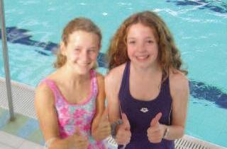 IN THE SWIM: Two pupils did a sponsored swim to help fund their trip