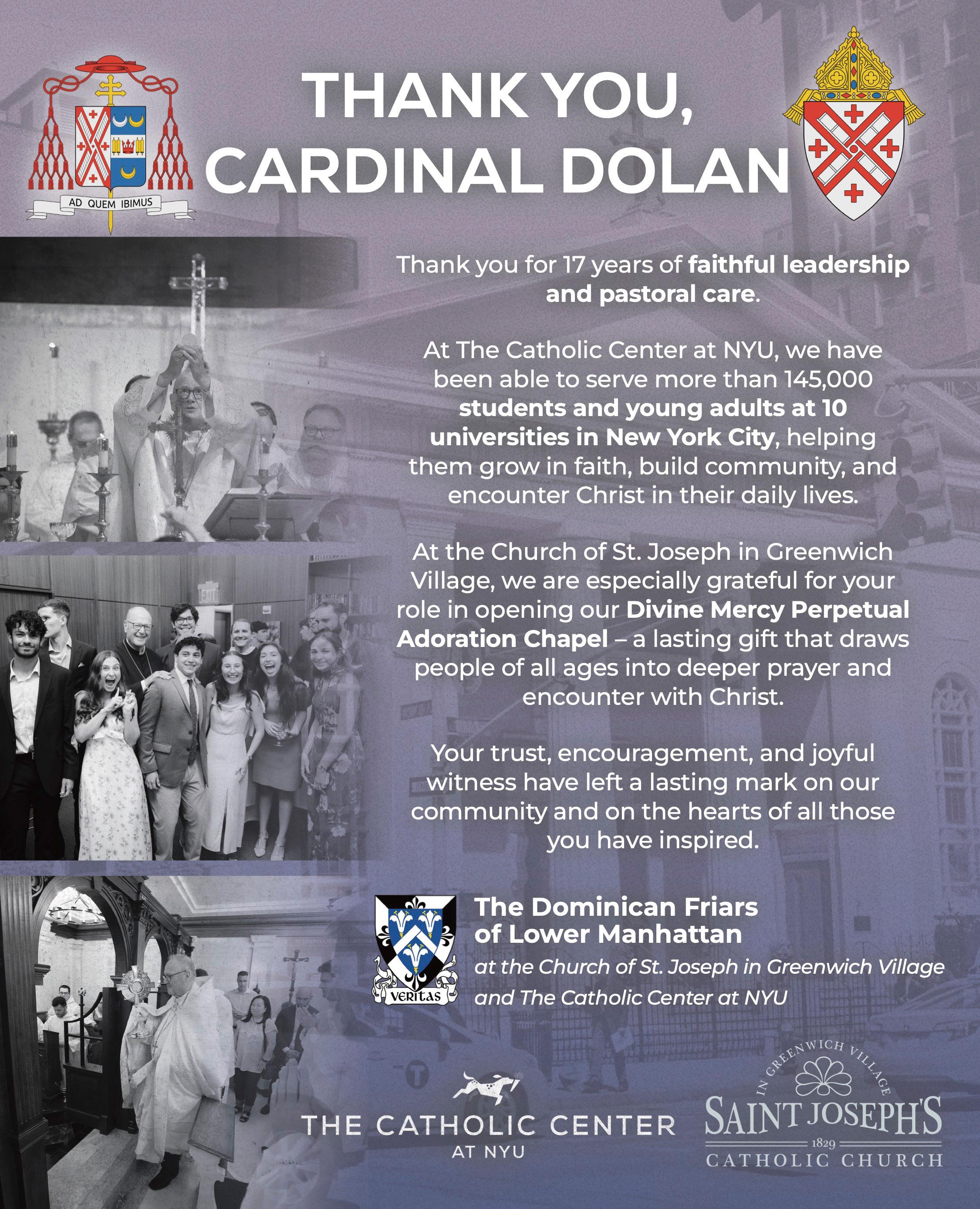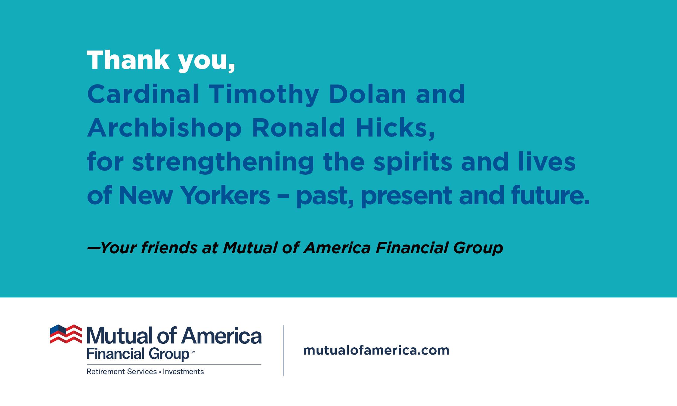To Cardinal Dolan, thank you for your magnanimous leadership here for seventeen years. In particular, thank