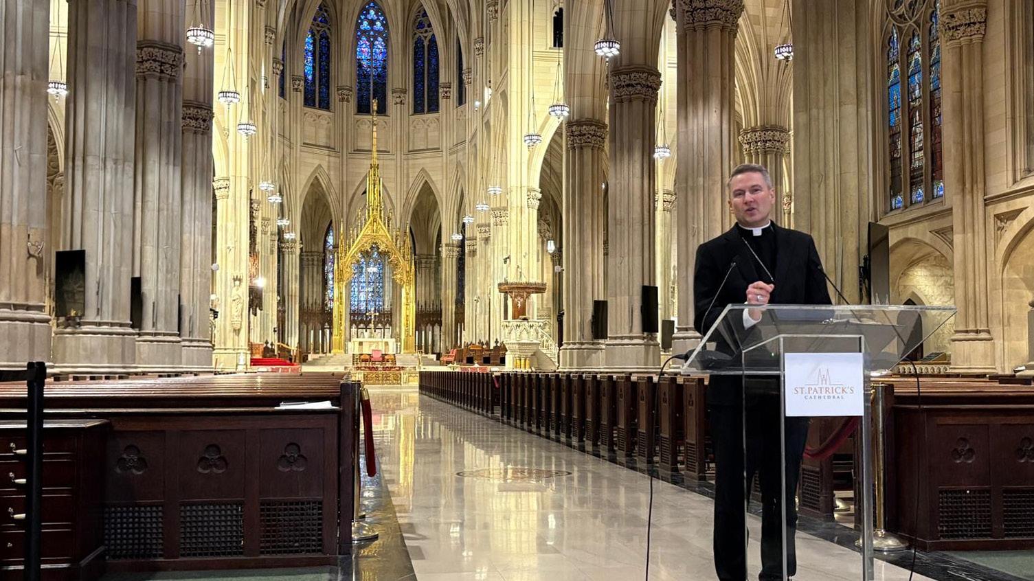 Archbishop-designate Ronald Hicks answers questions during a press conference at Saint Patrick’s Cathedral in Manhattan on February 5, 2026. Photo by Gregory A. Shemitz/OSV News.