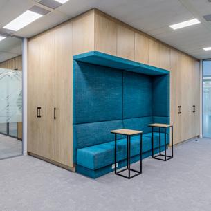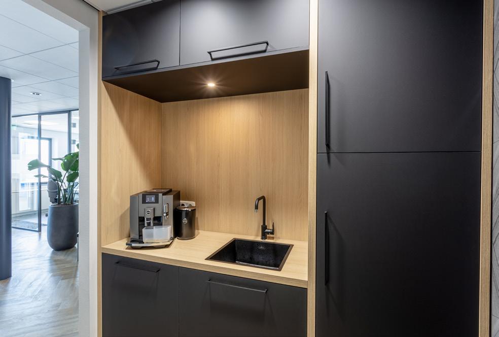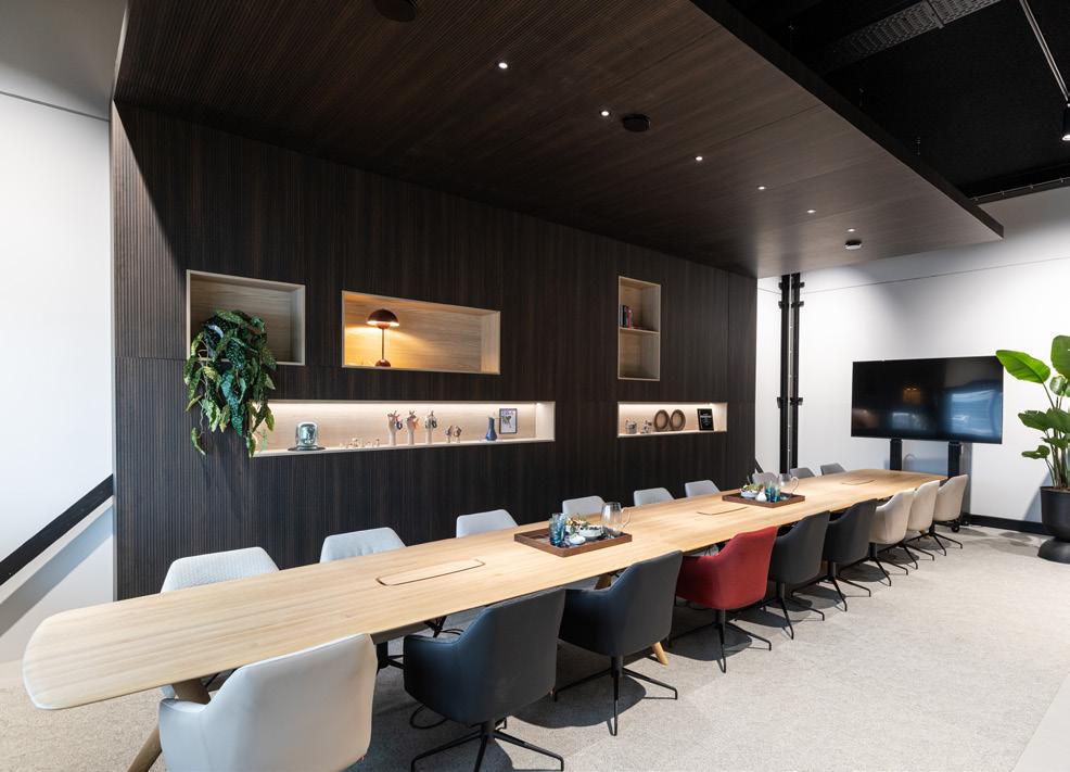 Er is gewerkt met duurzame materialen, slimme akoestische oplossingen en maatwerkmeubilair. “Functioneel, stijlvol en altijd met een hoge afwerkingsgraad.