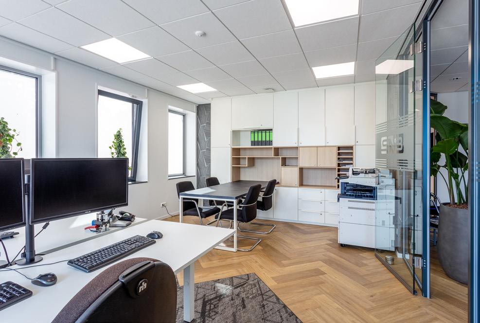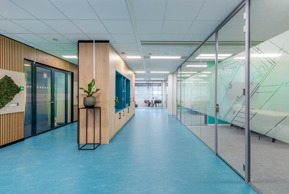 “Wij wilden een kantoor waarin je je echt thuis voelt,” vertelt directeur Roelof Jonkers. Esther kreeg daarbij veel vrijheid in het ontwerp en dat pakte goed uit. Van de verlichte bedrijfsnaam in de entree tot de frisse, gewaagde uitstraling: het resultaat is warm, functioneel en eigen. “De kracht van Interemm zit in de combinatie van ontwerp en realisatie onder één dak. Dat maakt het proces soepel en het resultaat top.”