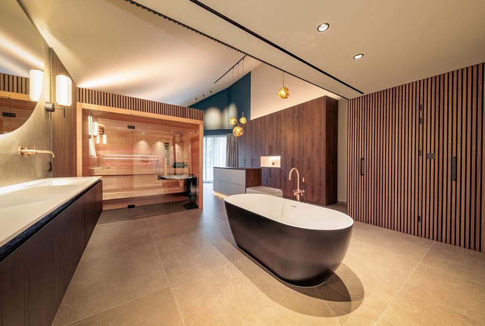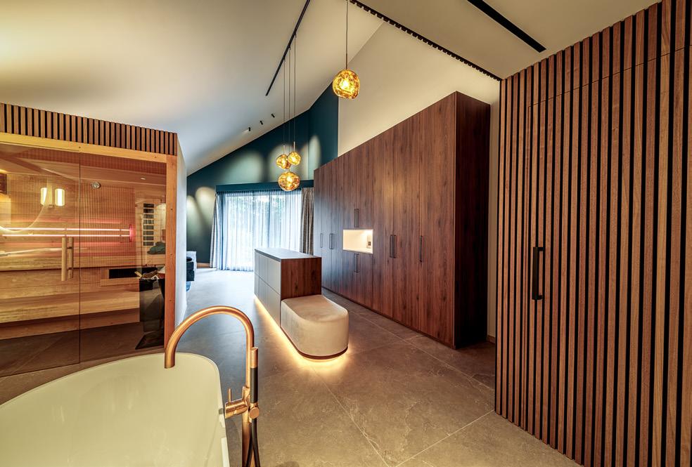 Paul Becker schakelde Interemm in voor de inrichting van een bijzondere slaapkamer met badkamer, ontstaan op de plek van een voormalig binnenzwembad. Met een bestaand ontwerp als uitgangspunt zorgde Interemm voor de verfijning, uitvoering en afwerking. “Ze voegden details toe waar wij zelf nooit aan gedacht hadden. Dat heeft echt het verschil gemaakt.”