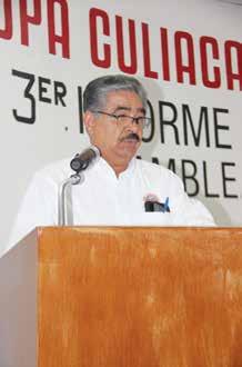 En su tercer informe de labores como presidente, Edilberto Estrada destacó la labor del área operativa del módulo de riego, y de sus usuarios que lograron llevar a buena cosecha la superficie establecida tanto del Otoño-Invierno 20212022, como del Primavera-Verano. Indicó que en dicho ciclo agrícola se consumieron 115 Mm3, considerando el agua de presa, el bombeo y rescate, así como la transferencia de otros módulos de riego y volúmenes adelan-