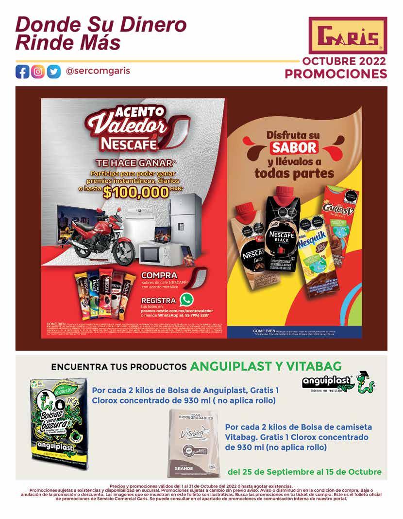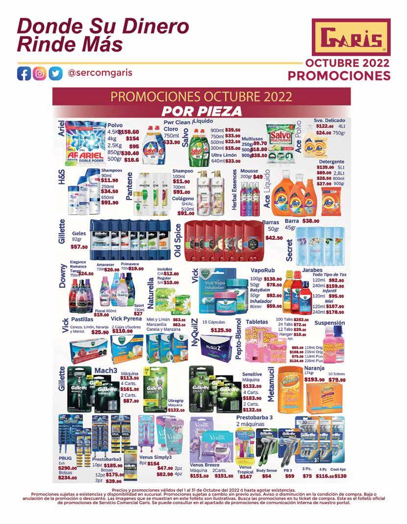 EL COMERCIO TRADICIONAL AL DETALLE y GARISRevista editada mensualmente por EMPRENDE MEDIOS, S.A.Edición 128 Octubre 2022. Reserva de derechos al uso exclu sivo número 04-2021-081214000400-102, expedido por la Dirección de Reserva de Derechos del Instituto Nacional de De rechos de Autor. Certificado de Licitud de Contenido Número 15938, Certificado de Licitud de Título Número 15938. Editorresponsable: Mario Alberto Montoya Álvarez. El Comercio Tra dicional al Detalle, es un medio de comunicación lícito cuyaactividad es la promoción de anuncios, artículos, reportajes ypublirreportajes de los anunciantes, sin que se entienda por ello que promueve el consumo o adquisición de los produc tos publicitados en los espacios de la revista. Las autorizaciones o leyendas que de acuerdo a la Ley o a las disposiciones delas autoridades competentes deban contener los anuncios contenidos en los espacios publicitarios de la revista son de la exclusiva responsabilidad de los anunciantes y/o de los fabricantes de los artículos o productos promocionados, por lo que la ausencia de los mismos no crea responsabilidad alguna para la revista, ni para aquellos que son ajenos a la omisión de las referidas leyendas o autorizaciones. El contenido de los anuncios,artículos, reportajes y publirreportajes son de la absoluta responsabilidad de los anunciantes por lo que la utilización de los mismos es bajo la responsabilidad y riesgo de los lectores, porlo cual se recomienda consultar a los fabricantes de los mismos ante cualquier duda o inquietud relacionada con los productos anunciados. Asimismo, los artículos editoriales que figuranen la revista, son realizados con base en las fuentes existentes para tal efecto, no obstante pudiera existir algún margen deerror, por lo cual la utilización de la información contenida en los mismos es bajo la responsabilidad y riesgo de los lectores,no siendo en consecuencia responsabilidad de la revista los errores que se contengan en las fuentes consultadas, por lo cual se recomienda que ante cualquier duda o inquietud seconsulte la información existente relacionada con los mismos.