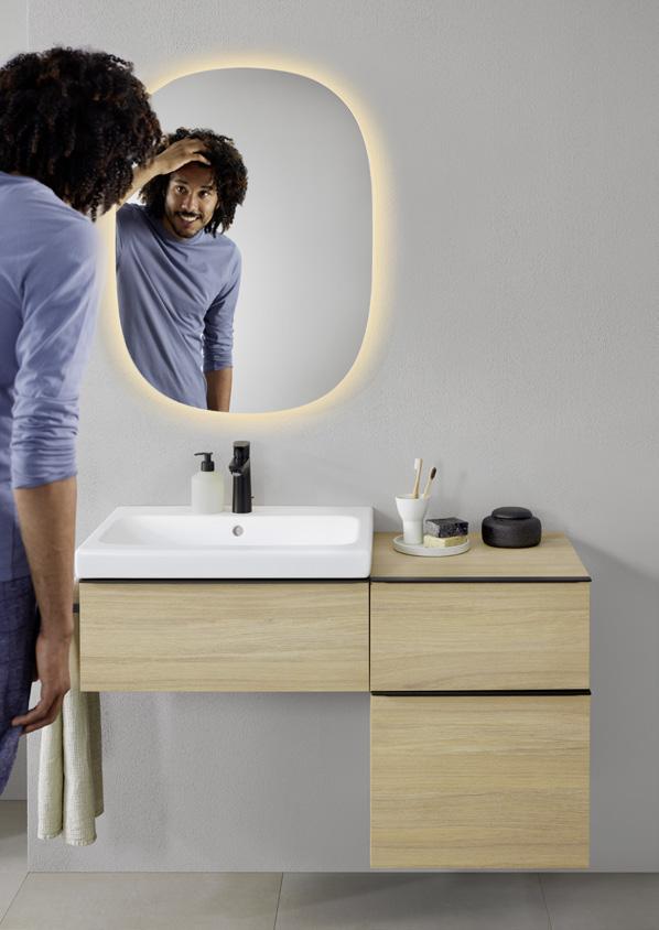 1 Flexibel rumsdesign med raka linjer: Geberit iCon tvättställ och modulära möbelkoncept.
